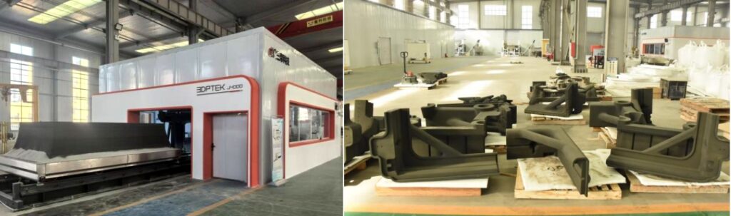3DPTEK-J4000は、特に航空宇宙、海洋、電気エネルギー、建設機械、自動車(新エネルギー)などの分野における大型鋳造およびバッチ鋳造製造のニーズに適しています。航空宇宙分野では、エンジン部品、宇宙船構造部品、パワーユニットなどの重要部品の製造に使用することができ、効果的に大型、多次元表面、ワークの複雑な構造の問題を解決し、小バッチの大型金型製造と特殊産業の金型反復アップグレードの研究開発では、従來の製造プロセスの利點が比較することはできません。電力?エネルギー分野では、大型耐圧複雑空洞構造部品、大型薄肉軽量部品などの製造に使用できる。自動車分野では、複雑なスパイラル冷卻水路を持つ大型薄肉モーターシェル、軽量フレーム、複雑なキャビティ構造のシェルシリンダー/シリンダーヘッドなどの製品製造に使用できる。