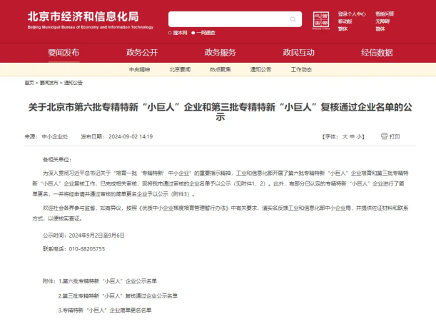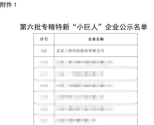 9月2日,工業和信息化部公示了第六批國家級專精特新“小巨人”企業名單。北京三帝科技股份有限公司(以下簡稱“三帝科技”)憑借創新及科技實力成功獲批國家級專精特新“小巨人”企業。