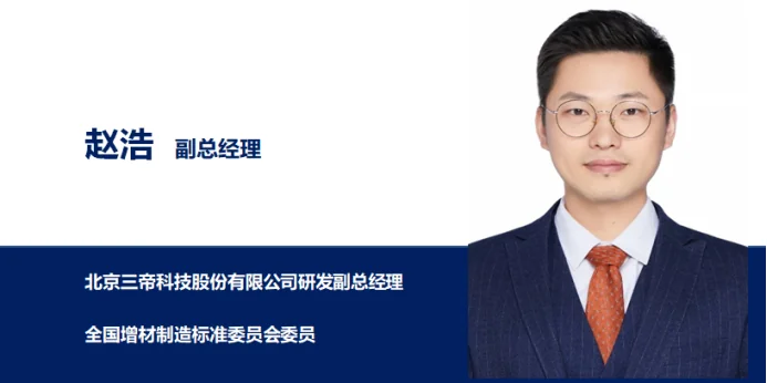 趙浩博士分享了題為《產(chǎn)業(yè)化金屬增材制造技術與應用》的報告,分別對金屬增材制造幾個主線技術的進展及應用進行了詳盡而深入的講解,對三帝科技自主研發(fā)的3DP/SLS金屬件快速鑄造工藝在航空航天、汽車、工業(yè)機械等領域的成熟產(chǎn)業(yè)化應用進行了分享,并對BJ粘結劑噴射金屬打印技術的研發(fā)進展及未來發(fā)展趨勢進行了分析和展望。他認為,當前金屬增材制造正在逐步走向成熟,隨著高效率、低成本、量產(chǎn)型技術的出現(xiàn),產(chǎn)業(yè)化應用空間不斷拓寬,對人才培養(yǎng)的需求增長,將創(chuàng)造出廣闊的產(chǎn)教融合機遇,三帝科技期待與更多的院校和科研機構開展深入合作,共同推進新技術、新應用的創(chuàng)新發(fā)展。