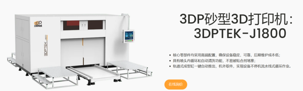 北京三帝科技股份有限公司是一家專注于工業(yè)級增材制造(3D打?。┭b備與快速制造服務(wù)的國家級高新技術(shù)企業(yè)、專精特新“小巨人”企業(yè)。公司是國內(nèi)唯一同時掌握選擇性激光燒結(jié)(SLS)、選擇性激光熔化(SLM)、3D砂型打?。?DP)和粘結(jié)劑噴射(BJ)四項核心3D打印技術(shù)的服務(wù)商。公司構(gòu)建了涵蓋技術(shù)研發(fā)、裝備與材料生產(chǎn)、工藝支持及制造服務(wù)的完整產(chǎn)業(yè)鏈,在粘結(jié)劑噴射(BJ)等多項核心技術(shù)領(lǐng)域處于國內(nèi)領(lǐng)先地位,并積極推動3D打印在鑄造升級、先進散熱、精準醫(yī)療等領(lǐng)域的規(guī)模化應(yīng)用。(咨詢熱線:韓經(jīng)理 13811566237)